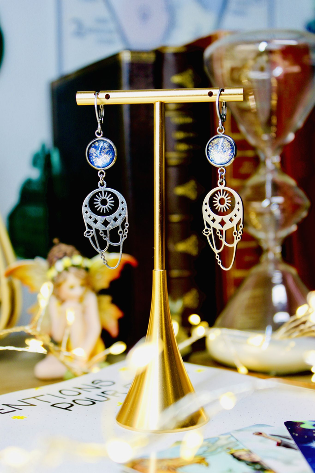 BO Dormeuses Danse des astres bleues nuit - Collection Poussières d'Étoiles