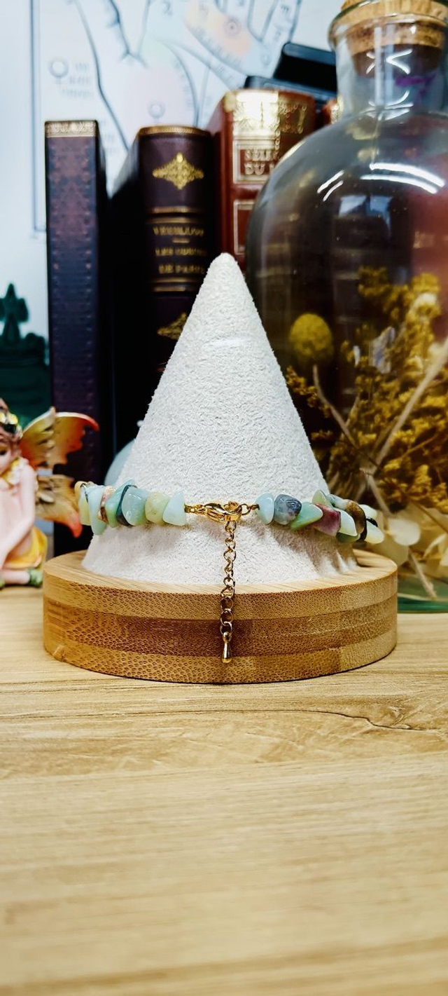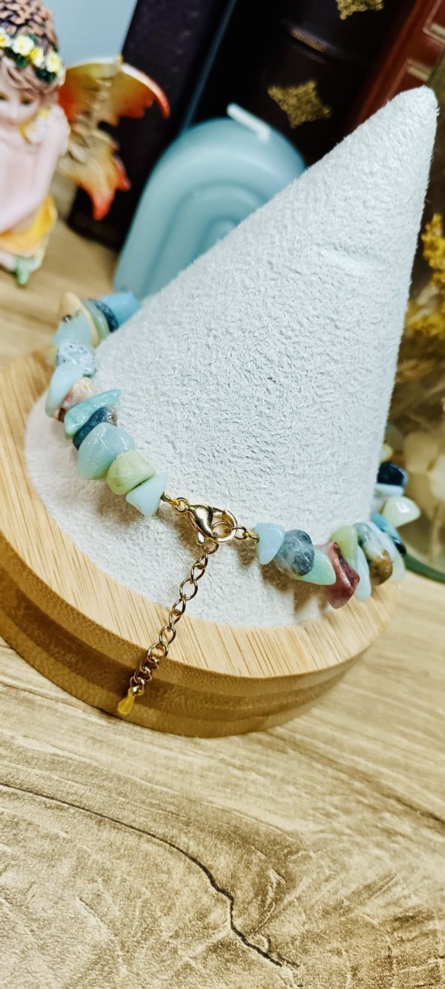 Laisse-toi porter par le mouvement doux de l'eau avec ce bracelet unique, disponible en argenté et en doré, en amazonite, pierre d’apaisement et de liberté intérieure. Comme une vague qui caresse le rivage, il t’invite à suivre le courant de la vie et de tes émotions avec confiance et fluidité.