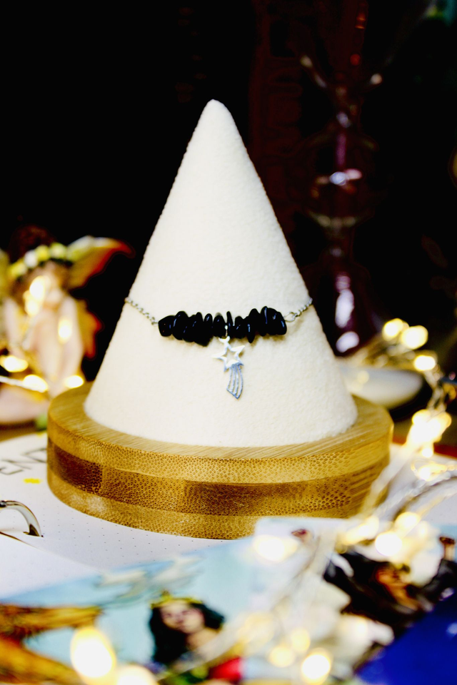Ce bracelet étoile filante de la collection Poussières d'Etoiles est un talisman de passage. Il symbolise le moment précis où l’on formule un vœu, où l’on décide de croire à la suite.
