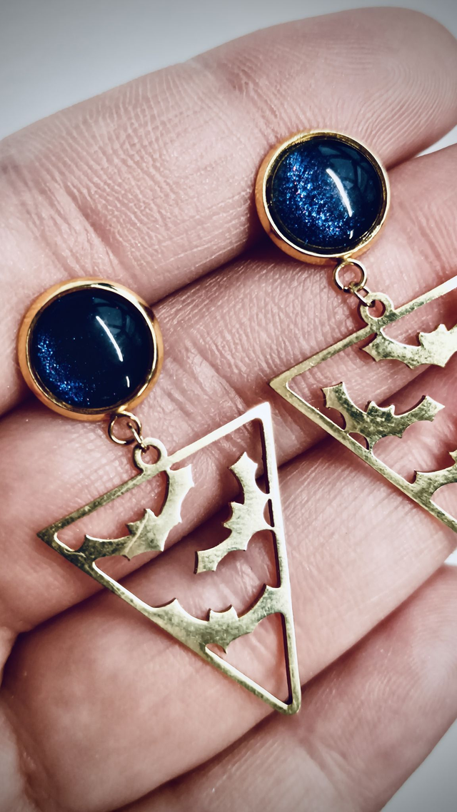 Les boucles d'oreilles Gardiennes de la nuit de la collection Empowering Halloween allient originalité, beauté et durabilité. Réalisées à partir de cabochons en verre peints avec des vernis à ongles de récupération, elles permettent de donner une vie durable à des vernis délaissés en leur évitant de devenir des déchets polluants. Les cabochons sont ensuite montés sur de l'acier inoxydable qui a la qualité d'être hypoallergénique et de ne pas ternir.
